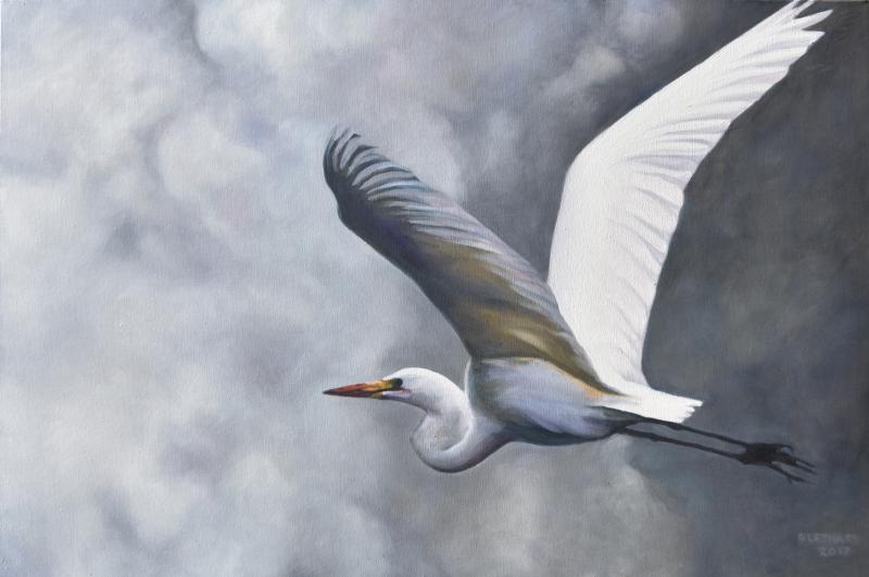 "Egret in Flight" Oil on canvas 36"x24"